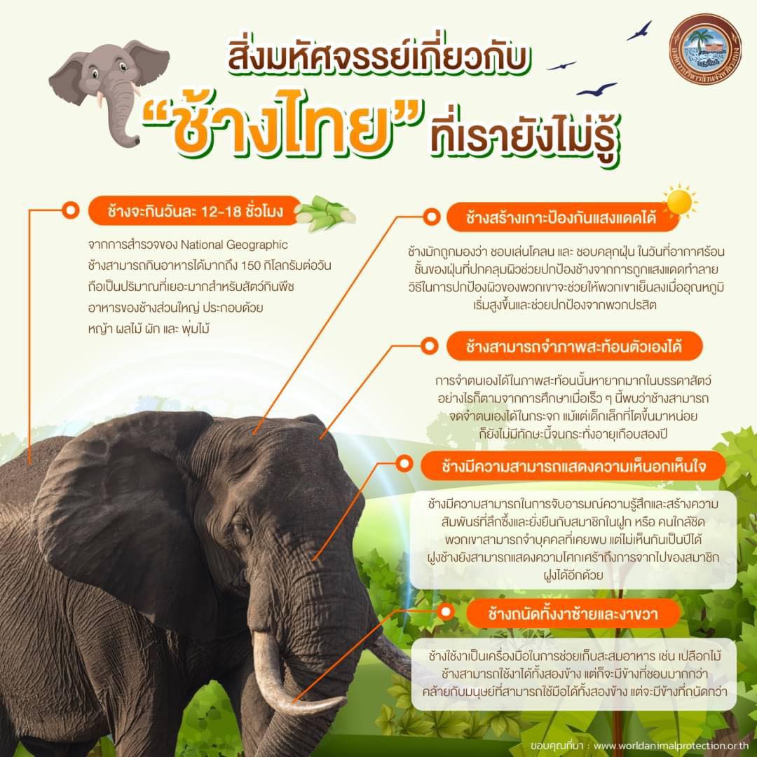 นี่คือข้อเท็จจริงที่เตือนเราว่าช้างนั้นน่าทึ่งเพียงใด สัตว์ที่สวยงามเหล่านี้สมควรได้รับการปกป้องจากเราทุกคน ด้วยความห่วงใยจากองค์การบริหารส่วนจังหวัดระยอง”