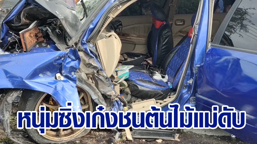 หนุ่มขับเก๋งพาแม่ไปไหว้พระ ขากลับเสียหลักชนต้นไม้ แม่ดับ-ตัวเองสาหัส พบยาบ้าในรถ 5 เม็ด