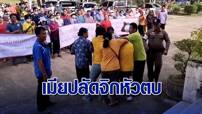 ชุลมุน! ชาวบ้านฮือขับไล่ปลัด อบต.บ้านไร่ ถูกเมียปลัดจิกหัวตบ เย็บ 2 เข็ม