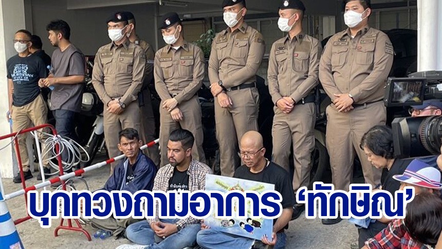 'คปท.' บุก รพ.ตำรวจ ทวงถามอาการ 'ทักษิณ' หลังนอนอยู่รพ. 2 เดือน