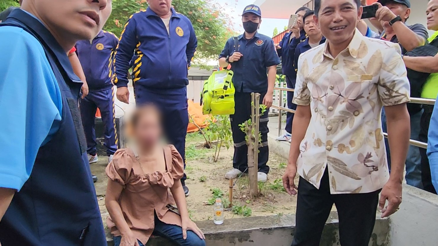 ขณะที่ทางด้านของนายผล ดำธรรม ผวจ.สมุทรสาคร นายไพฑูรย์ มหาชื่นใจ ปลัดจังหวัดสมุทรสาคร พร้อมด้วย เจ้าหน้าที่ อส. กับ พัฒนาสังคมและความมั่นคงของมนุษย์จังหวัดสมุทรสาคร รวมถึง กอ.รมน.สมุทรสาคร ได้พยายามช่วยกันเกลี้ยกล่อมให้หญิงสาวคนดังกล่าวปีนลงมา เพื่อพูดคุยและหาแนวทางการให้ความช่วยเหลือในปัญหาที่เกิดขึ้น