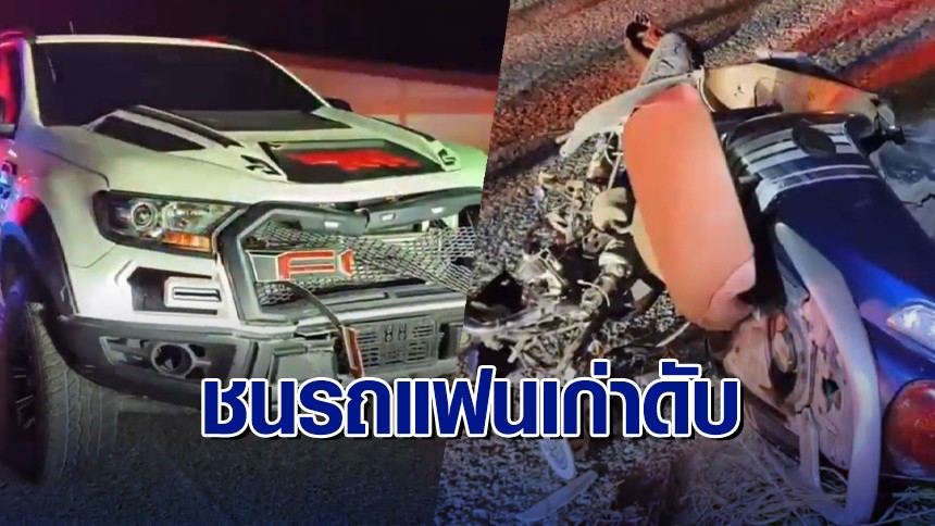 หนุ่มวัย 35 ปี ขับกระบะขึ้นเนินชนรถ จยย.อดีตแฟนเก่า เสียชีวิต
