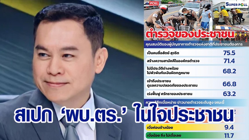 เมื่อวันทึ่ 28 เม.ย. 67 ผู้ช่วยศาสตราจารย์ ดร.นพดล กรรณิกา กรรมการผู้ทรงคุณวุฒิ นโยบายตำรวจแห่งชาติ (ก.ต.ช.) ที่ปรึกษามูลนิธิ สถาบันวิจัยความสุขชุมชนและความเป็นผู้นำ เสนอผลสำรวจเรื่อง “ตำรวจของประชาชน” กรณีศึกษาตัวอย่างประชาชนทุกสาขาอาชีพทั่วประเทศ จำนวนตัวอย่างในการวิเคราะห์ทางสถิติทั้งสิ้น จำนวนทั้งสิ้น 1,207 ตัวอย่างดำเนินโครงการระหว่างวันที่ 25 - 27 เมษายนพ.ศ.2567 ที่ผ่านมา พบว่า ที่น่าพิจารณา คือ เมื่อถามประชาชนถึง คุณสมบัติ (Spec) ของผู้บัญชาการตำรวจแห่งชาติคนต่อไปที่ประชาชนต้องการ ส่วนใหญ่ หรือร้อยละ 75.5 ระบุ เป็นคนซื่อสัตย์ สุจริต รองลงมา ร้อยละ 71.4 ระบุ สร้างความสามัคคีในองค์กรตำรวจร้อยละ 68.2 ระบุ ไม่มีประวัติด่างพร้อย ไม่พัวพันกับเงินผิดกฎหมาย ร้อยละ 66.8 ระบุ เข้าถึงประชาชน ดูแลความปลอดภัยของประชาชน และร้อยละ 63.2 ระบุ เร่งฟื้นฟู ศรัทธาของประชาชนตามลำดับ