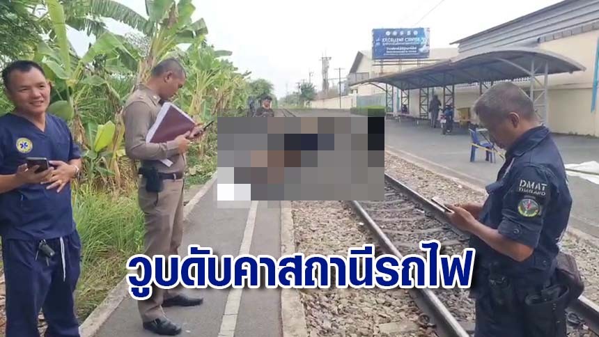 ที่เกิดเหตุ เป็นชานชลารถไฟ ด้านหลังโรงเรียนฐานเทคโนโลยี โดยพบผู้เสียชีวิตเป็นชายหนึ่งราย ทราบชื่อ นาย ประยูร บุญเจ็ก อายุ 62 ปี สวมใส่ เสื้อเชิ้ตสีเหลือง สวมคลุมทับด้วยเสื้อคลุมสีน้ำเงิน กางเกงวอร์มขายาวสีดำ ใส่รองเท้าผ้าใบ มีบาดแผลที่ศรีษะ ใต้ตาขวา 1 แผล