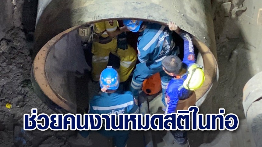 เจ้าหน้าที่เร่งช่วยเหลือกว่า 1 ชม. คนงานหมดสติในท่อบ่อพักสายไฟใต้ดิน หลังเข้าไปตรวจงาน อาการปลอดภัยแล้ว