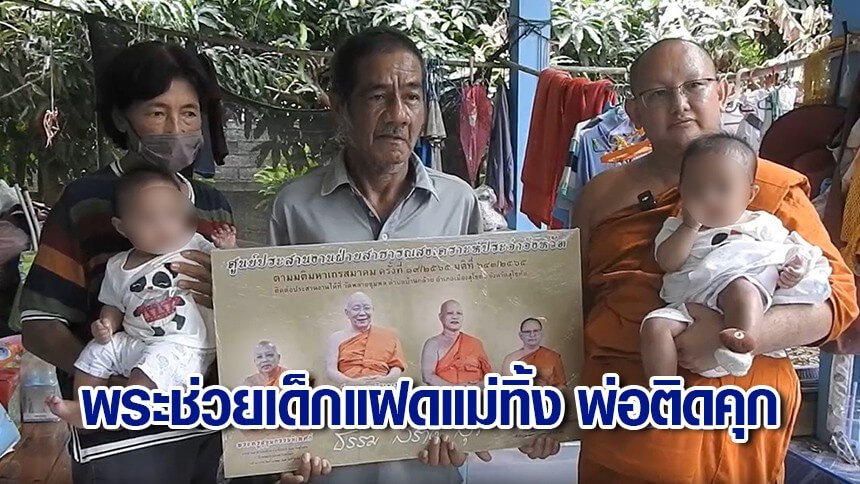 คุณพระช่วย! เจ้าคณะตำบล เจ้าอาวาส พร้อมคณะลงพื้นที่ช่วยหนูน้อยฝาแฝดวัย 6 เดือน ถูกแม่ทิ้ง - พ่อติดคุก ยกคณะมอบเงินและสิ่งของช่วยเหลือ