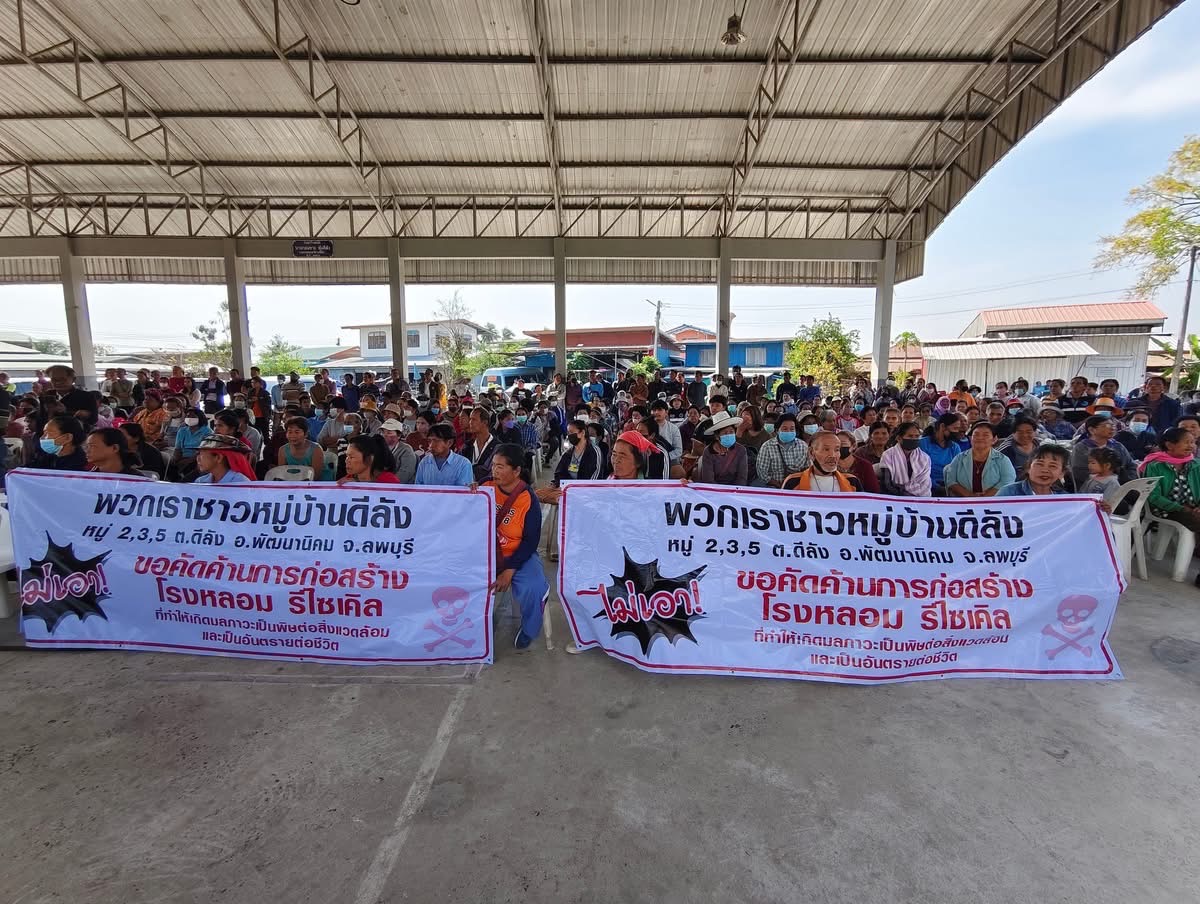 ชาวบ้านดีลัง อ.พัฒนานิคม จ.ลพบุรี รวมตัวแสดงพลังคัดค้านการก่อสร้างโรงงานผลิตน้ำมันเชื้อเพลิงจากพลาสติกและยางรถยนต์ หวั่นก่อมลพิษ โวยประชาชนไม่มีส่วนร่วมแสดงความเห็น ประกาศจะรอฟังคำตอบภายใน 7 วัน หากยังไม่หยุดโครงการจะบุกไปที่ศาลากลางจังหวัด