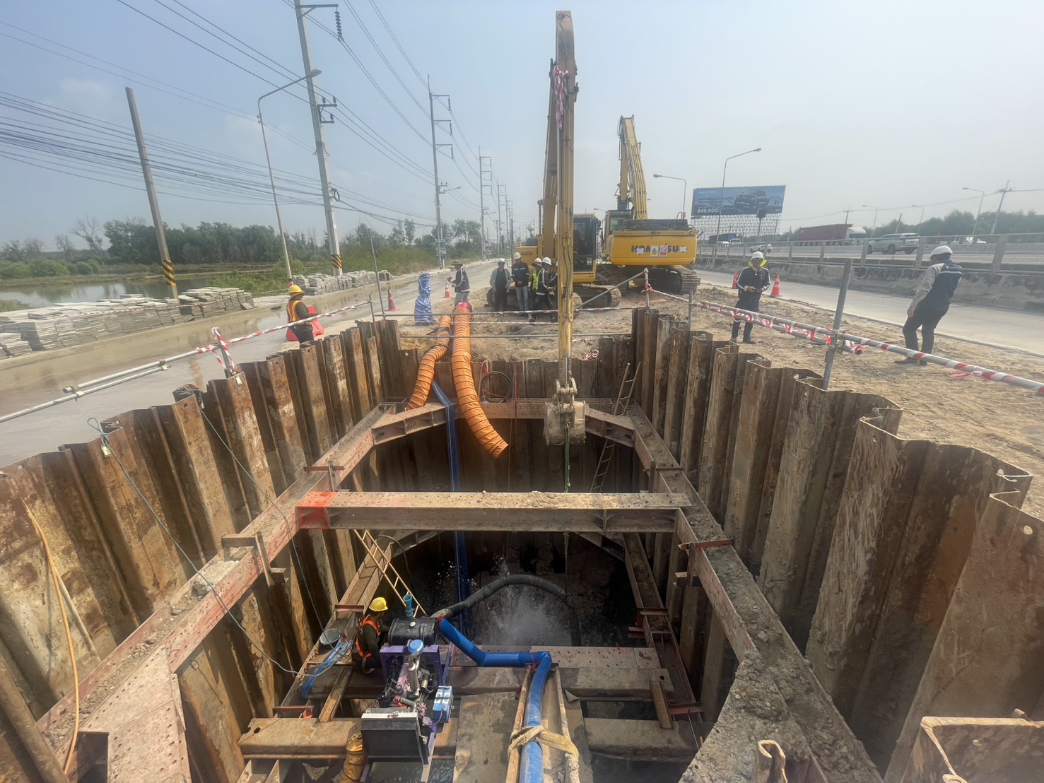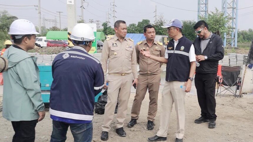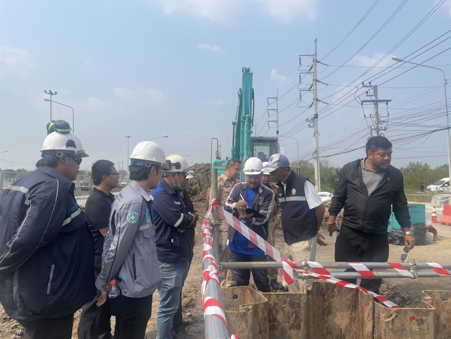 นายเกรียงศักดิ์ พุ่มนาค รองผู้อำนวยการสำนักงานชลประทานที่ 9 พร้อมด้วย นายวัชระ พรหมคุณาภรณ์ ผู้อำนวยการโครงการชลประทานชลบุรี นายกานต์พงศ์ บูรณปรีชา หัวหน้าฝ่ายส่งน้ำและบำรุงรักษาที่ 1 นายอธิภัทร ลาภอุดม หัวหน้าฝ่ายส่งน้ำและบำรุงรักษาที่ 2 โครงการชลประทานชลบุรี และนายวิศว์รุจน์ อักษรนำ หัวหน้าฝ่ายประมวลวิเคราะห์สถานการณ์น้ำ ส่วนบริหารจัดการน้ำและบำรุงรักษา ลงพื้นที่ติดตามการดำเนินงานซ่อมแซมแนวท่อสูบผันน้ำคลองพระองค์ไชยานุชิต – อ่างเก็บน้ำบางพระ