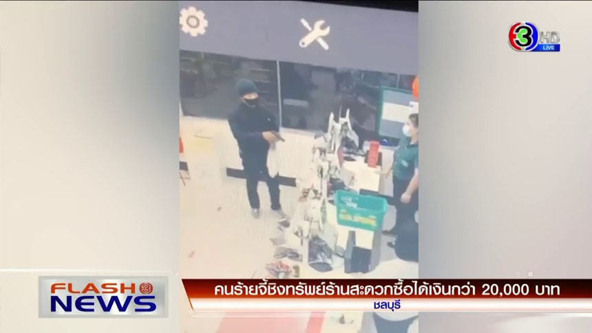 ชายบุกเดี่ยวควงปืนจี้ร้านสะดวกซื้อ กวาดเงินสดกว่า 2 หมื่น