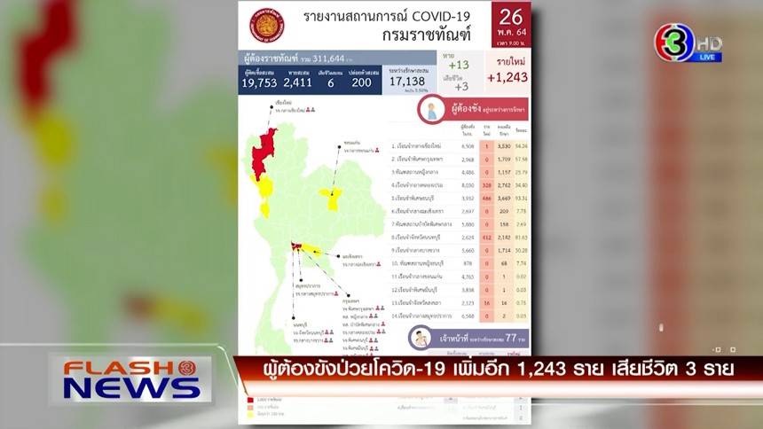 ยังคงพบผู้ป่วยและผู้เสียชีวิตจากโควิด-19 เพิ่มในหลายจังหวัดทั่วประเทศ ส่วนใหญ่เป็นผู้ป่วยในเรือนจำ