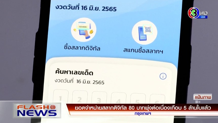 ยอดจำหน่ายสลากดิจิทัลแอปฯ "เป๋าตัง" พุ่งต่อเนื่องเกือบ 5 ล้านใบแล้ว