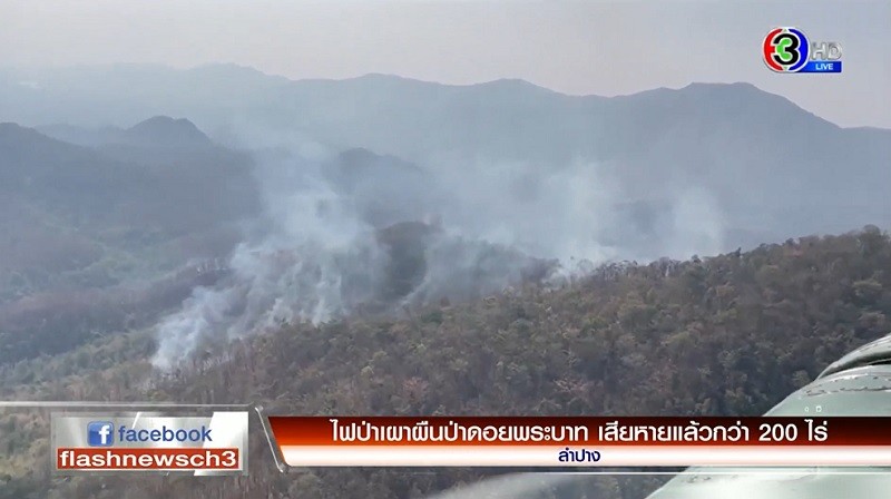ไฟป่าเผาผืนป่าดอยพระบาท เสียหายแล้วกว่า 200 ไร่