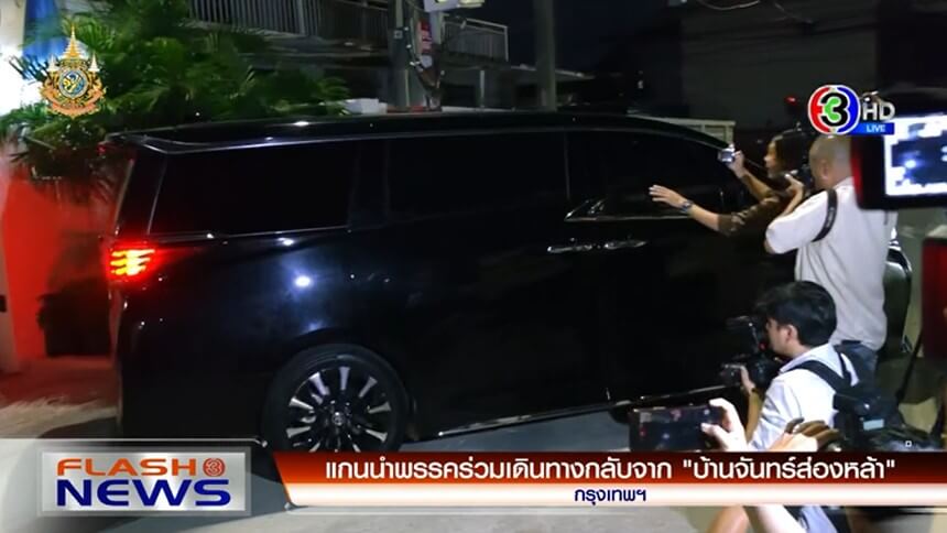 - แกนนำพรรคร่วมเดินทางกลับจากบ้านจันทร์ส่องหล้า
