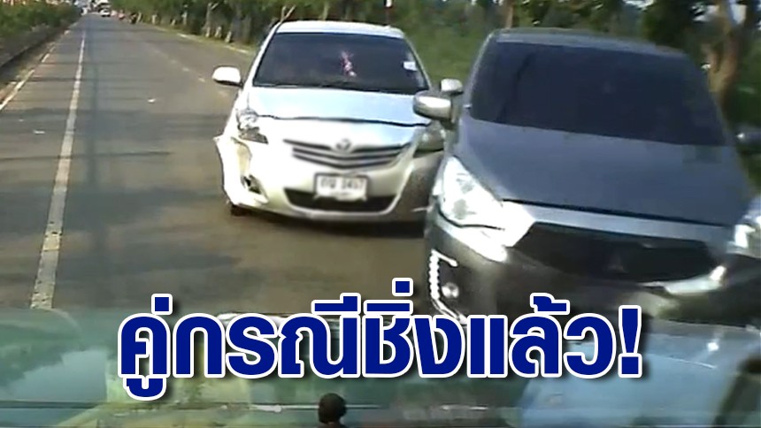 คลิปชัด เก๋ง 2 คันซิ่งไล่บี้กันมา ก่อนพุ่งชนกระบะเสียหาย 7 หมื่น ชิ่งไม่รับผิดชอบ