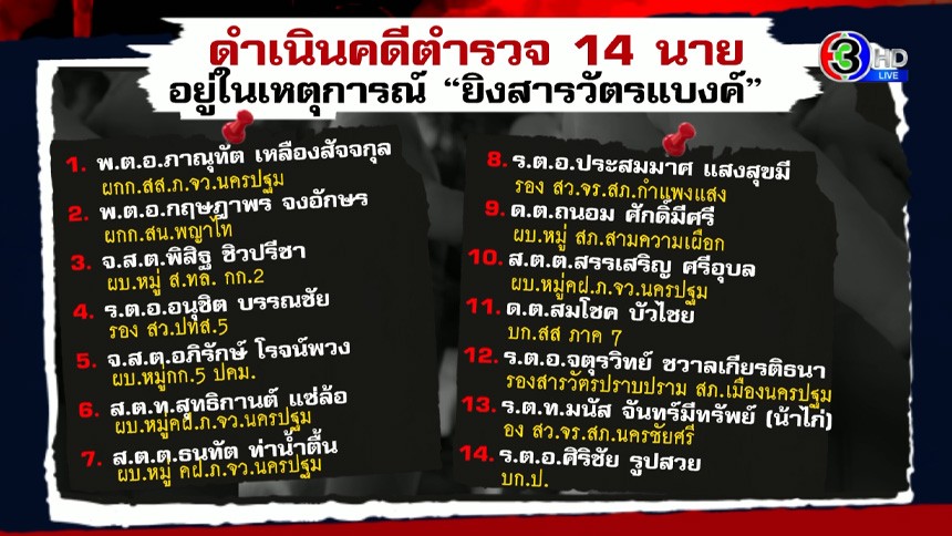 แจ้งข้อหา 14 ตร. ร่วมงานเลี้ยงบ้านกำนันนก ผิด ม.157 ให้การเท็จคดียิง ‘สารวัตรแบงค์’