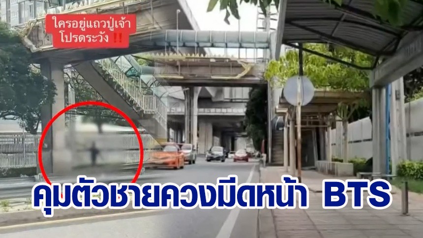 จังหวัดสมุทรปราการ ชาวบ้านผู้ใช้รถไฟฟ้าบีทีเอสเป็นผวา เมื่อไปเจอชายควงมีดอยู่บริเวณ ทางขึ้น- ลง สถานีรถไฟฟ้า BTS ปู่เจ้า