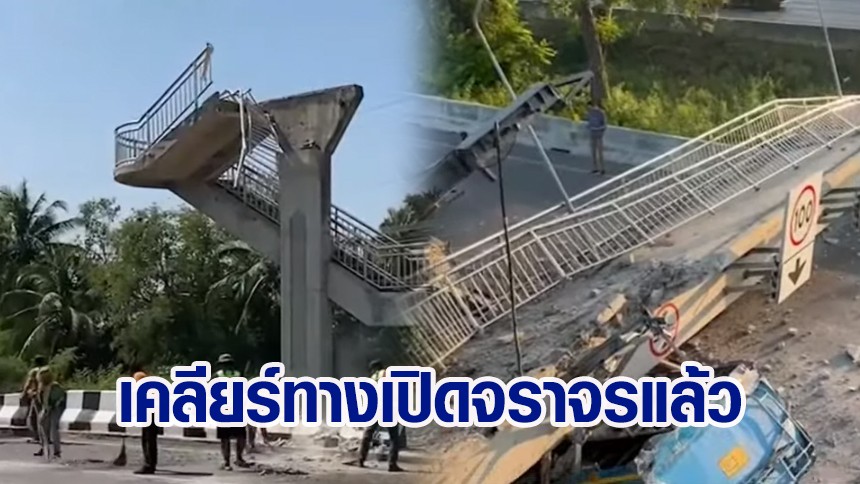 เปิดการจราจรแล้ว หลังรถเทรลเลอร์ชนสะพานลอยถล่ม ขวางถนนสายเอเชีย คาดเสียหายกว่า 2 ล้าน