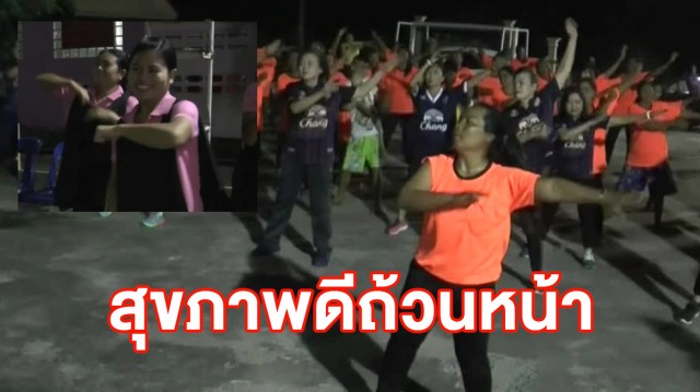 ที่บ้านโคกหิน จ.บุรีรัมย์ ชาวบ้านได้มารวมตัวกัน เพื่อออกกำลังกายในลานกีฬาประจำหมู่บ้าน มีหมดทุกเพศทุกวัย ไม่ว่าจะรุ่นเล็กหรือรุ่นใหญ่