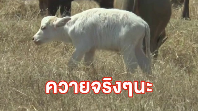 หาดูยาก! ควายน้อยขาวโพลนไปทั้งตัว มองผ่านๆนึกว่าแกะ