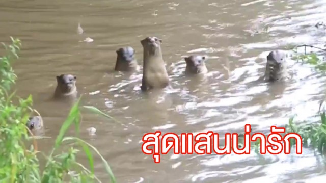 น่าเอ็นดู! ชาวระนอง พบครอบครัวนากน้ำจืด กว่า 20 ตัว ออกมาเล่นน้ำ จับปลากันอย่างมีความสุขในคลองบ้านริ้น