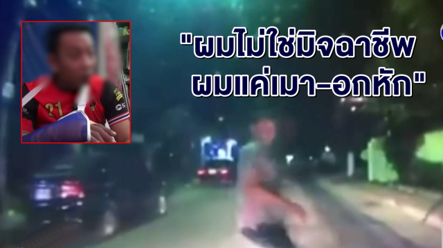 แชร์สนั่นโซเชียล! หนุ่มกระโดดใส่รถโต้ ไม่ใช่มิจฉาชีพ อ้างเมาเพราะอกหัก