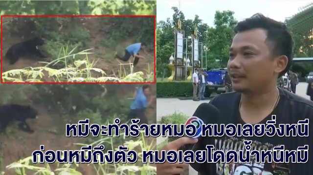 ผู้สื่อข่าวได้สัมภาษณ์ เปิดใจเจ้าหน้าสัตวแพทย์จากศูนย์เพาะพันธุ์สัตว์ป่าภูเขียว ได้ใช้ปืนยิงยาสลบไว้ได้ แต่ยาสลบยังไม่ออกฤทธิ์ หมีควายพยายามไล่ทำร้ายเจ้าหน้าที่จนต้องกระโดดน้ำเอาตัวรอด
