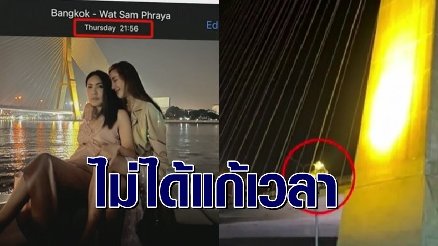 เปิดหลักฐานใหม่คลี่ปม การเปิด-ปิด ไฟสลิงสะพานพระราม 8 ทำชาวเน็ตตั้งข้อสังเกต กระติกแก้ไขเวลาในภาพที่ถ่ายคู่กับแตงโม ก่อนจะเกิดเหตุพลัดตกเรือเสียชีวิต
