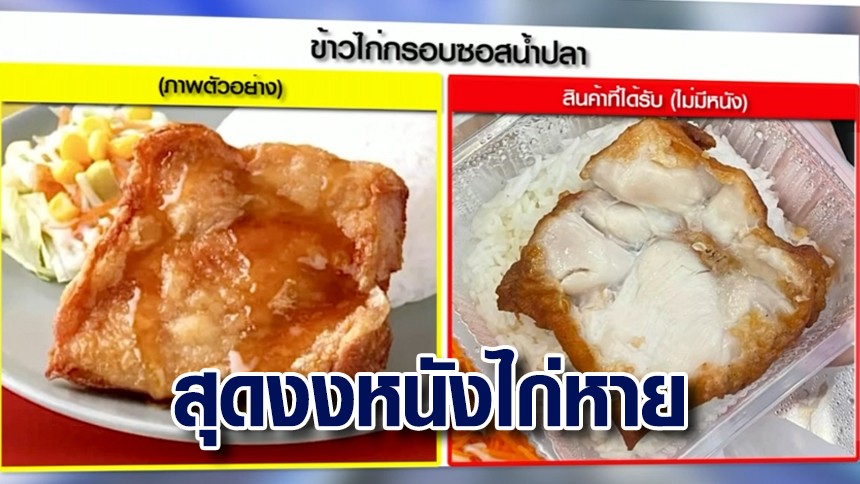 กรณีผู้ใช้เฟซบุ๊กรายหนึ่ง โพสต์ในเพจผู้บริโภคว่า เธอได้สั่งข้าวไก่กรอบซอสน้ำปลา แต่หนังไก่กลับหายไป โดยในโพสต์มีข้อความระบุว่า “รบกวนสอบถามค่ะสั่งข้าวไก่กรอบซอสน้ำปลาแบรนด์หนึ่งมา แต่เหมือนหนังไก่โดนดึงออกไปค่ะ ไม่ทราบว่าคนอื่นเป็นเหมือนเราไหมคะ”
