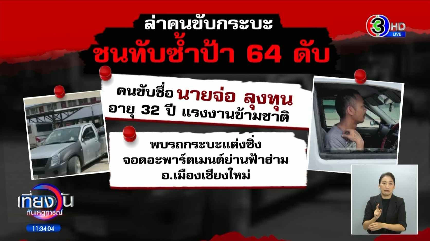 ทั้งนี้ขอความร่วมมือพลเมืองดี แจ้งเบาะแสตามจับรถคันที่ชนป้า ซึ่งเป็นกระบะซิ่ง ยี่ห้ออีซูซุ ดีแม็กซ์ ตอนเดียวไม่ติดแผ่นป้ายทะเบียน ทั้งด้านหน้าและด้านหลัง ฝากระบะท้ายมีสติกเกอร์กระบะซิ่งเชียงใหม่