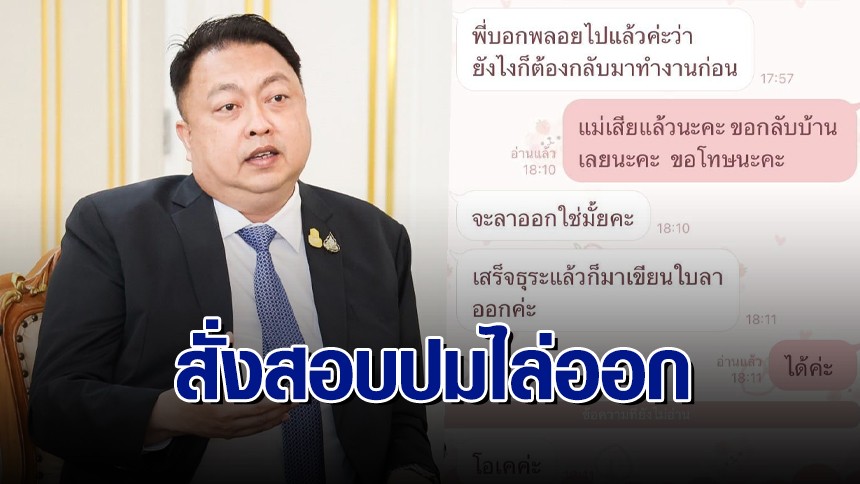 รมว.แรงงาน ฮึ่ม! สั่งสอบข้อเท็จจริง ปมสาวลางานดูแม่ก่อนสิ้นใจ แต่หัวหน้าสั่งให้ลาออก เตรียมเชิญทั้งสองฝ่ายเข้าถูกคุยหาแนวทางช่วยเหลือ