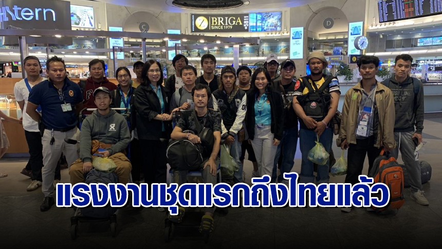 กลับถึงไทยแล้ว! 15 แรงงานไทยที่ทำงานอยู่ในพื้นที่สู้รบในประเทศอิสราเอล เดินทางกลับมาถึงสนามบินสุวรรณภูมิ โดยมีครอบครัวของพวกเขามารอรับ ซึ่งมีรายงานว่าจะมีแรงงานไทยเดินทางกลับมา 15 คน ในจำนวนนี้มี 4 คน ที่ได้รับบาดเจ็บจากเหตุการสู้รบครั้งนี้