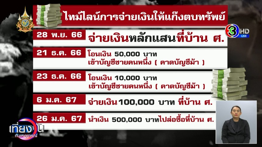 และวันที่ 26 มกราคม ได้นำเงินไปให้ นาย ศ. ที่บ้านพัก อีก 5 แสนบาท และเข้าจับจับกุมนาย ศ. ได้อย่างที่ปรากฎตามข่าว
