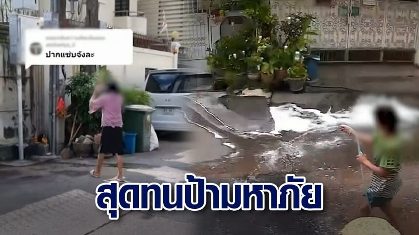 โดยนายป๊อก เล่าให้ฟังว่า ตนอาศัยอยู่ที่หมู่บ้านแห่งนี้มานาน 10 กว่าปีที่ผ่านมา ก็ไม่เคยมีปัญหา ป้าเพื่อนบ้านก็อยู่ปกติ ยังไม่มีพฤติกรรมอะไร กระทั่งประมาณ 2 ปีที่ผ่านมา หลังโควิดป้าเพื่อนบ้านเริ่มมีพฤติกรรมเอาสายยางมาฉีดที่พื้นหน้าบ้าน