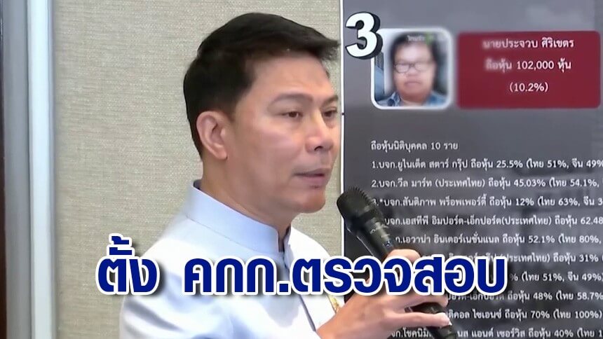 เจ้าหน้าที่เข้าตรวจสอบผู้ถือหุ้น คนแรก คือ นายประจวบ ศิริเขตร ถือหุ้นของบริษัท 10.2% บ้านอยู่ที่จังหวัดร้อยเอ็ดแต่ไม่เจอตัว ภรรยาบอกว่า นายประจวบออกจากบ้านไป 2-3 วัน ก่อนหน้า และได้ทราบว่า นายประจวบทำงานรับจ้างก่อสร้าง มีรายได้น้อยมาก ประมาณ 1 หมื่นบาทต่อเดือน จึงมีแนวโน้มว่าเป็นลักษณะของ นอมีนี หรือ การถือหุ้นอำพราง ซึ่งยังพบว่า นายประจวบ ไปถือหุ้นนิติบุคคลอีกถึง 10 บริษัท ส่วนผู้ถือหุ้นคนอื่นอยู่ระหว่างติดตามตัว