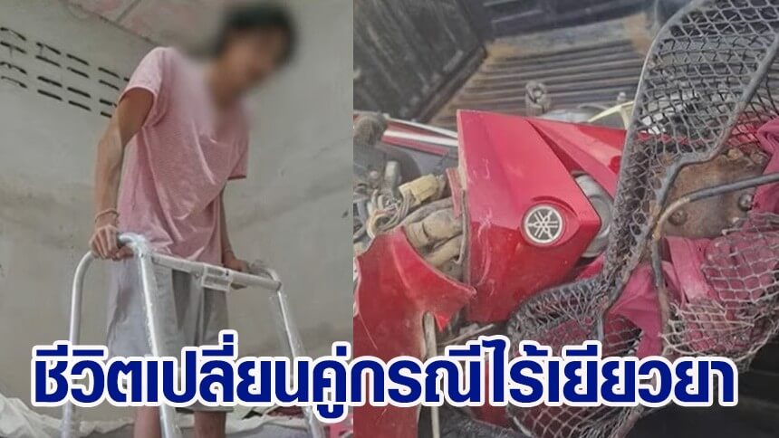 หนุ่มขี่จยย.จะไปช่วยแม่ขายส้ม เจอกระบะเลี้ยวกะทันหัน อีกคันเสียหลักหมุนมาชน เจ็บสาหัส นอนติดเตียง ไร้เยียวยา
