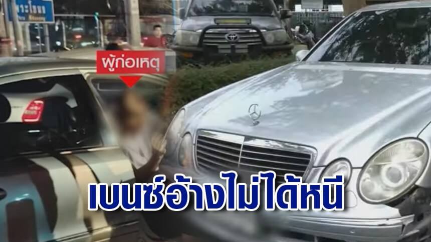 เบนซ์ชนแล้วหนี พลเมืองดีไล่ตามจับคาแยกพระโขนง พบคนขับเอี่ยวคดีดัง ยันไม่เมา-ไม่ได้หนี