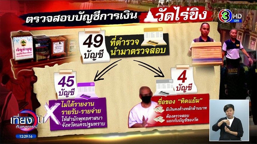 จ่อเอาผิด "หมอเตย-สามี" หนุน "ทิดแย้ม" ยักยอกเงินวัดไร่ขิง เร่งสอบการเงินทั้งหมด พบหมกเม็ด 49 บัญชี แจ้งแค่ 4 บัญชี