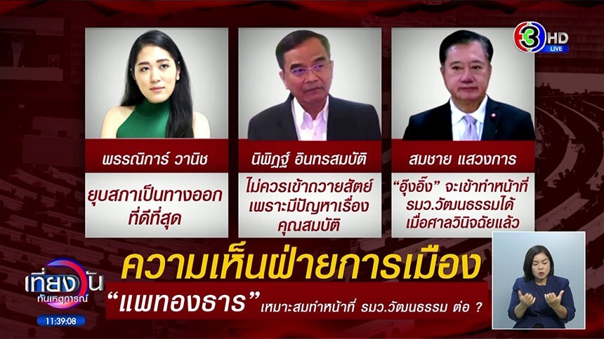 เรื่องของ นายกรัฐมนตรี น.ส.แพทองธาร ชินวัตร หลังจากที่เมื่อวานนี้ ศาลรัฐธรรมนูญ สั่งให้หยุดปฏิบัติหน้าที่เป็นการชั่วคราว กรณี สว. ยื่นสอบจริยธรรม ปมคลิปเสียง พูดคุยกับ สมเด็จฮุน เซน วันนี้มีความเห็นจากหลายฝ่าย ตั้งคำถามว่าผลที่เกิดขึ้นจะทำให้ น.ส.แพทองธาร ทำหน้าที่ รัฐมนตรีวัฒนธรรมได้หรือไม่