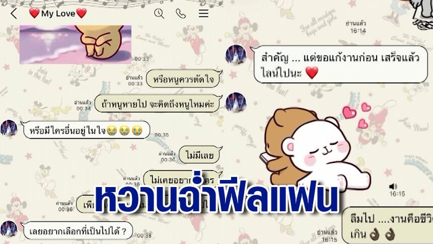 เช่น การตั้งชื่อบัญชีผู้ใช้ว่า "My love" รวมถึงการส่งสติกเกอร์ระบุข้อความ I love you, ข้อความบอกฝันดีก่อนนอน, ข้อความแสดงความคิดถึง หึงหวงในเชิงง้องอน และบอกกู๊ดไนท์ รวมถึงข้อความในลักษณะถามย้ำถึงความรักที่มีต่อกัน