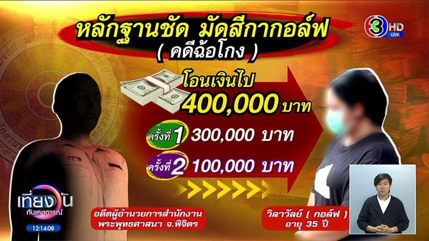 ตำรวจกองปราบปราม เตรียมเบิกตัว "สีกากอล์ฟ" ดำเนินคดีข้อหาฉ้อโกง หลังพบหลอกยืมเงิน อดีต ผอ.สำนักพุทธฯพิจิตร และคดีรีดทรัพย์ อดีตผู้ช่วยเจ้าอาวาสวัดโสธรฯ ยืนยันมีหลักฐานเส้นเงินชัดเจน