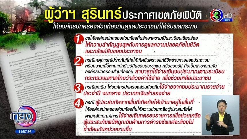 สุรินทร์ ประกาศเขตภัยสงคราม จังหวัดแรก ยกระดับช่วยเหลือปชช.ที่ได้รับผลกระทบ