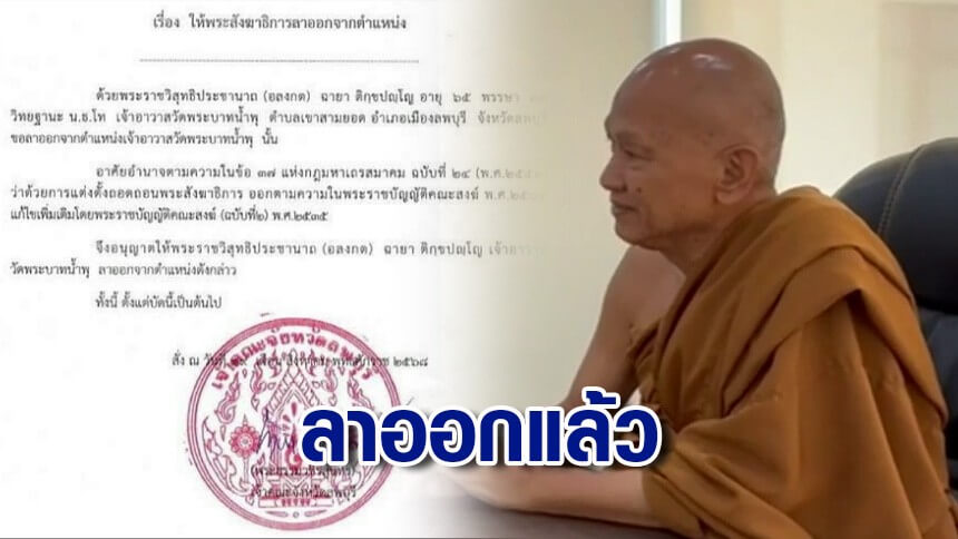 จาก คำสั่งเจ้าคณะจังหวัดลพบุรีที่ 122/2568 เรื่องให้พระสังฆาธิการลาออกจากตำแหน่ง