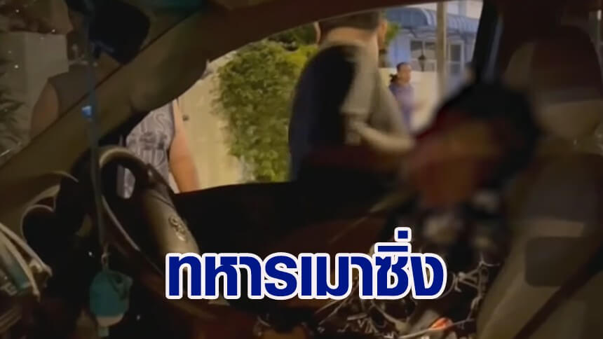 ทหารยศสิบเอกเมา ซิ่งกระบะชนท้ายรถเก๋งสองแม่ลูกจอดรอซักผ้า จนรถไถลไกลกว่า 100 เมตร มีผู้บาดเจ็บ 3 คน