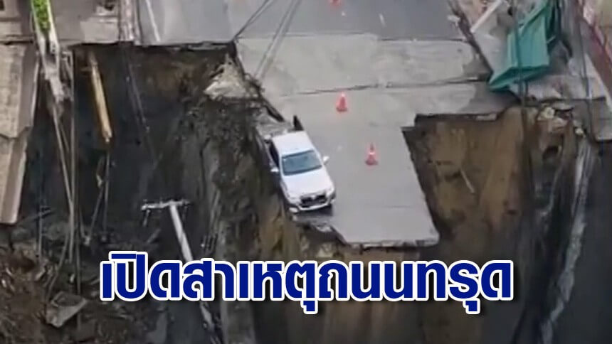 กรมทรัพยากรธรณี เผยสาเหตุถนนทรุดตัว เกิดจากขุดอุโมงค์ก่อสร้างรถไฟใต้ดินไปโดนท่อประปาใต้ดินแตก ทำให้ใต้ดินเป็นโพรง