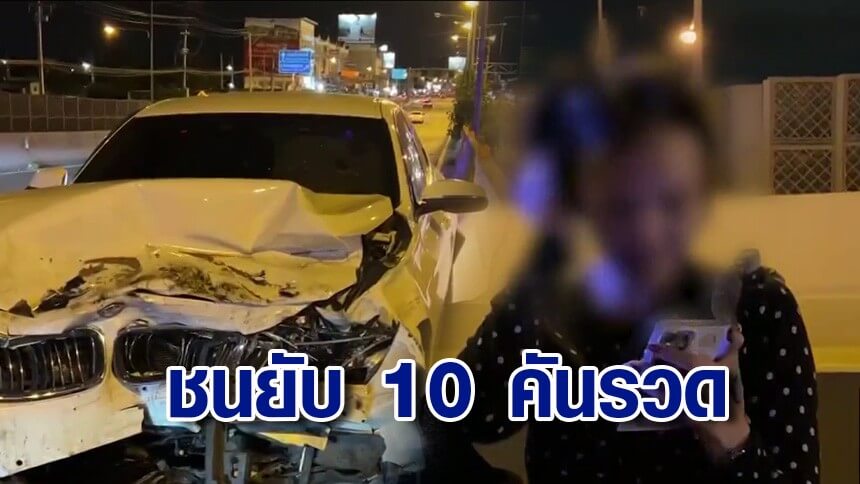 สาวเมาซิ่งบีเอ็ม ย้อนศร 5 กม. ชนดะ 10 คันรวด ถูกจับ พูดไม่รู้เรื่อง ยังบอกขำๆ