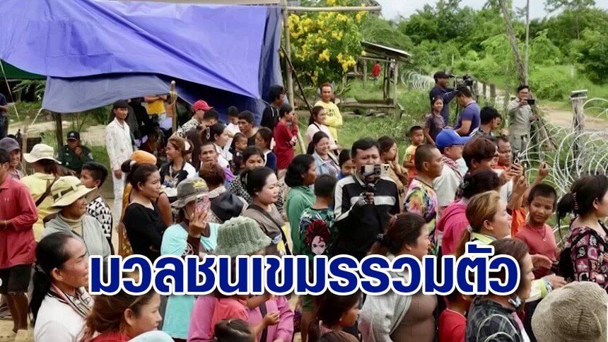 มวลชนกัมพูชา ทอยเข้ามารวมพลประชิดฝั่งตรงข้ามบ้านหนองหญ้าแก้ว หลังครบกำหนดเส้นตายต้องออกจากพื้นที่อธิปไตยไทยภายในวันนี้ และยังเสริมกำลังทหารมากกว่าปกติ ขณะที่ฝ่ายไทยนั้น เจ้าหน้าที่ได้นำป้ายขั้นตอนมาติดชี้แจงบริเวณบ้านหนองจาน พร้อมย้ำคำสั่ง นายกฯ อนุทิน ให้กัมพูชาออกจากพื้นที่ตามข้อตกลงเดิม