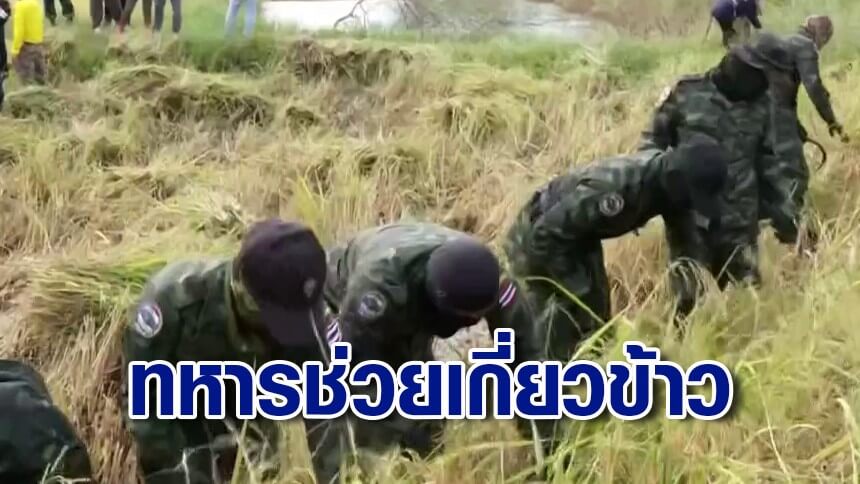 ชาวนาบ้านหนองหญ้าแก้วซึ้งใจ ทหารช่วยเกี่ยวข้าว หลังไม่กล้าเข้าพื้นที่ หวั่นโดนลูกหลงกระสุนเขมร