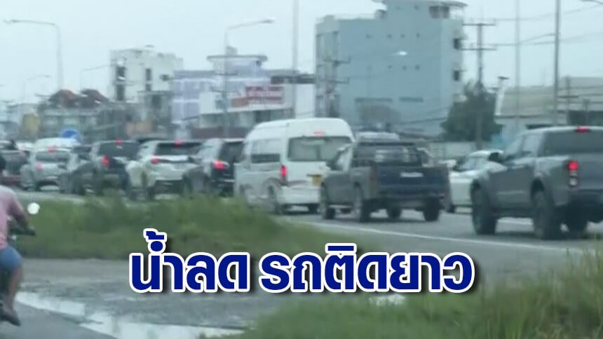บางกล่ำรถติดยาว 5 กม. หลังน้ำเริ่มลด รถกลับมาสัญจรได้