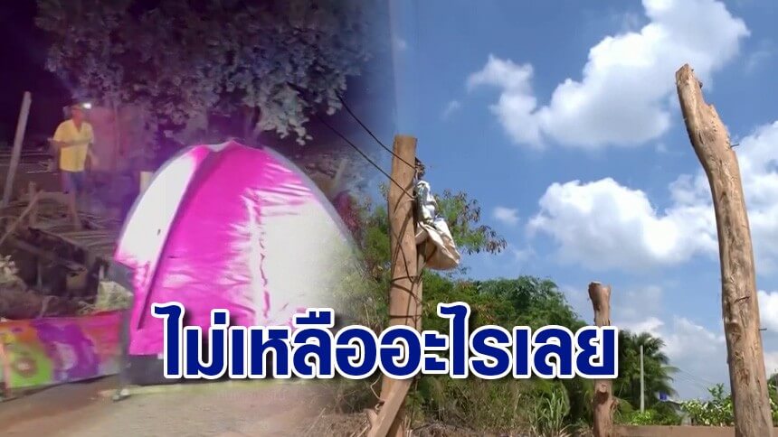 น้ำท่วมซัดบ้านพังไม่เหลือแม้แต่เสา ลุงกางเต็นท์นอนริมถนน ถือค้อนตอกไม้ พยายามสร้างบ้านใหม่อีกครั้ง