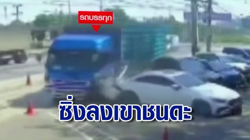 กล้องวงจรปิดบริเวณหน้าฟาร์มโชคชัย ริมถนนมิตรภาพ อำเภอปากช่อง จังหวัดนครราชสีมา เผยให้เห็นนาทีรถบรรทุกไก่ วิ่งมาด้วยความเร็ว ก่อนหักซ้ายพุ่งเข้าชนรถที่จอดอยู่ในลานจอดรถ แล้วยังไปพุ่งชนโครงเหล็กจำกัดความสูงที่หน้าร้านสเต็ก จนพังเสียหาย เหตุเกิดช่วงเที่ยงวานนี้